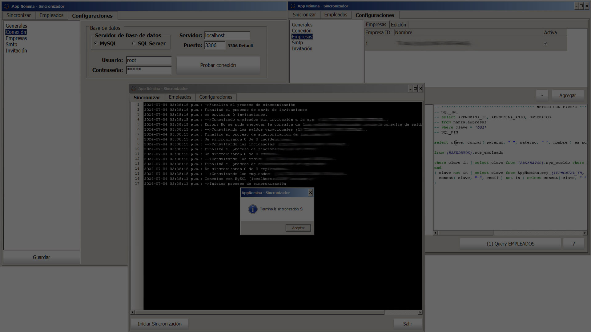 Aplicación de escritorio diseñada para sincronizar los datos de tu sistema de nomina con la aplicación movil.